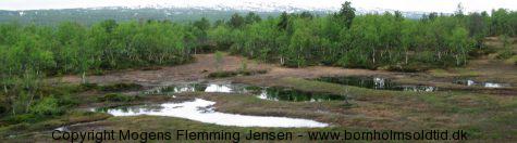 Herover ses et foto af park og skovtundra, hvor lavt voksende birk er fremherskende, som det kan have set ud på Bornholm i Brummekulturen. Landskabet præges af mange vandløb og ufremkommelige mosedrag. Fotoet er fra Sameland i Nordnorge i juni måned.