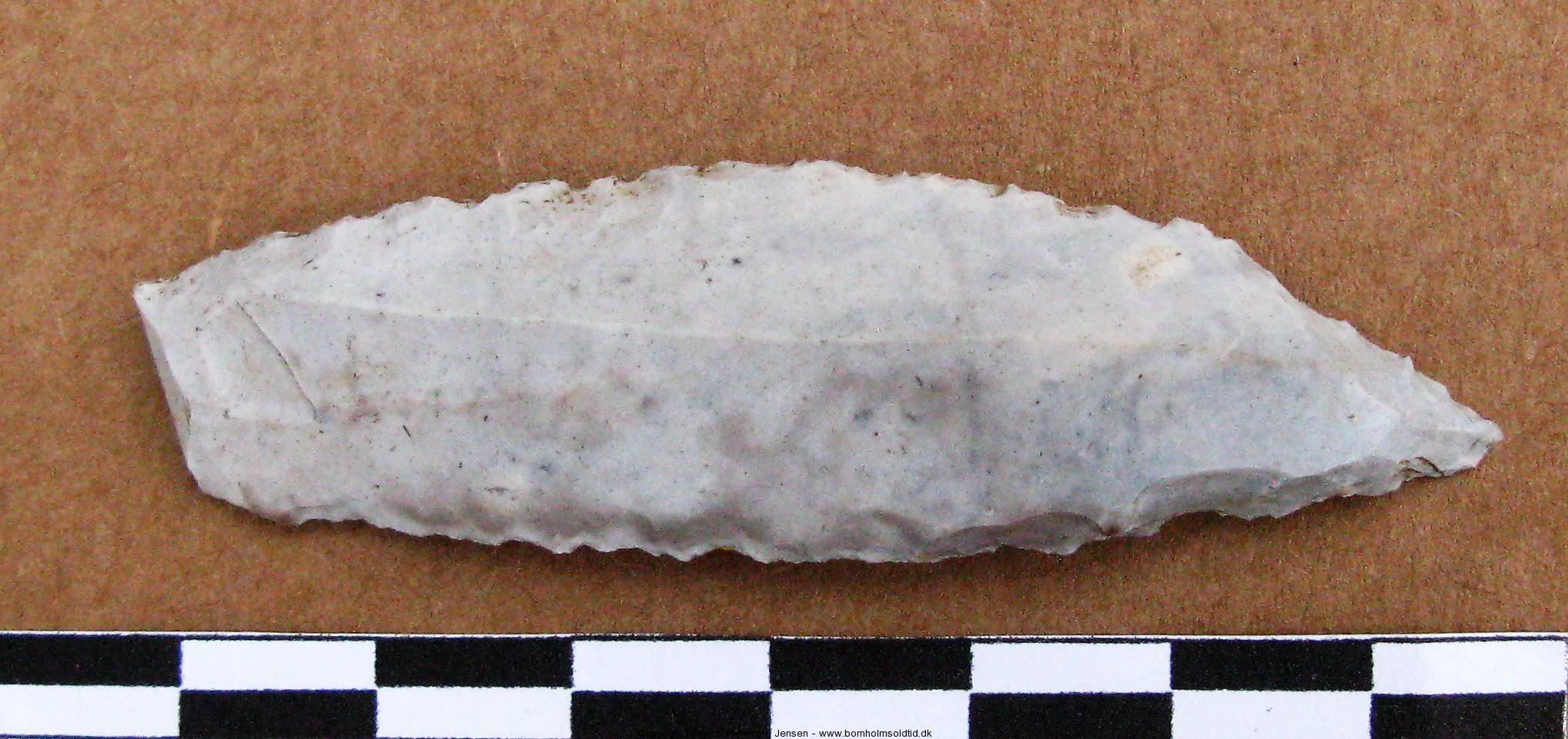 Pilespidsen herover, er et løsfund fra samme plads ved Vallensgårdmosen. Udstillet på Bornholms Museum.