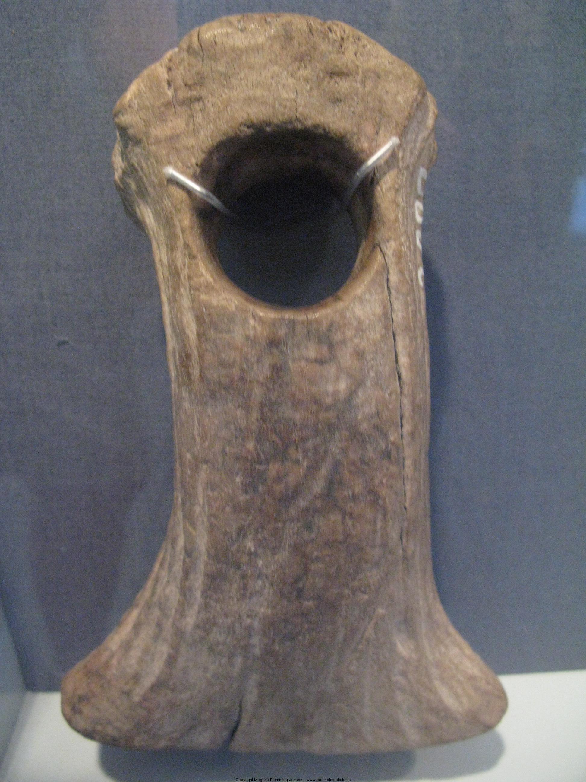 Ved Thoruppegård i Klemensker er der funder en tværøkse af elsdyrtak. Neders på øksen er der et hul beregnet til montering af en flinteskærpe. Udstillet på Bornholms museum.
